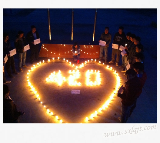 4月20日8點(diǎn)02分,四川雅安發(fā)生7.0級(jí)地震,震源深度13公里,地震造成雅安、成都、自貢等13個(gè)市州、69個(gè)縣共150萬人受災(zāi)。得知地震消息后,銅黃20標(biāo)項(xiàng)目經(jīng)理部全體同志于21日晚8點(diǎn)舉行了“情系雅安,祈福獻(xiàn)愛”活動(dòng)。大家用點(diǎn)燃的蠟燭拼成心形圖案和“4.20”字樣,員工手捧寫滿祝福語的心愿卡,默哀祈福,愿逝者安息,生者堅(jiān)強(qiáng),共同為雅安受災(zāi)同胞祈福加油。