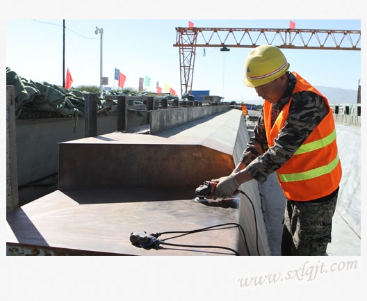?現(xiàn)場(chǎng)工人認(rèn)真打磨箱梁模板