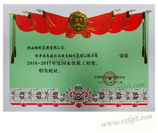 經(jīng)中國(guó)施工企業(yè)管理協(xié)會(huì)組織評(píng)選,在本次大會(huì)上,集團(tuán)公司參建的西安至銅川高速公路莊里連接線工程項(xiàng)目斬獲2016-2017年度國(guó)家優(yōu)質(zhì)工程獎(jiǎng)。集團(tuán)公司副總經(jīng)理、四公司總經(jīng)理解剛同志獲得“2016-2017年度國(guó)家優(yōu)質(zhì)工程獎(jiǎng)突出貢獻(xiàn)者”榮譽(yù)稱號(hào)。