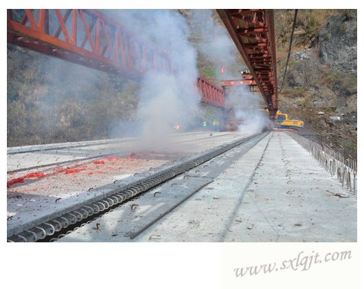 國慶村大橋全長420米,單幅寬12.7米,預(yù)制箱梁共計(jì)80片,單片箱梁最大重量175噸。由于受地勢條件限制,整個(gè)架設(shè)過程采用高度為38米的移動式龍門吊進(jìn)行提梁,所以難度和危險(xiǎn)度都比較大。項(xiàng)目部精心策劃,周密考慮,經(jīng)過多次論證和試驗(yàn),制定了安全可行的安裝方案。在全體參建人員的共同努力下,國慶村大橋順利實(shí)現(xiàn)合龍,為該項(xiàng)目完成全年施工任務(wù)打下了堅(jiān)實(shí)基礎(chǔ)。