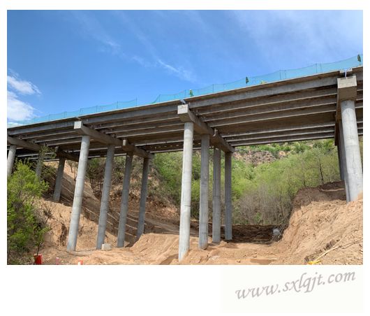 該橋位于延安市姚店鎮(zhèn)蒲屯村,橋梁全長157米,最大橋高23米,上部結(jié)構(gòu)為預(yù)應(yīng)力混凝土連續(xù)箱梁,下部結(jié)構(gòu)為柱式橋墩、柱式橋臺。該橋跨越雞爪形黃土沖溝,沖溝兩側(cè)坡面陡峭,大樁號岸為沖溝溝垴,地形破碎,施工難度較大。項目部超前謀化,周密部署,現(xiàn)場施工精心組織,根據(jù)現(xiàn)場實際優(yōu)化施工方案,加強施工現(xiàn)場安全生產(chǎn)管理工作,增加安全設(shè)備投入,確保橋梁架設(shè)工程質(zhì)量和進(jìn)度,為后續(xù)施工創(chuàng)造有利工作面。