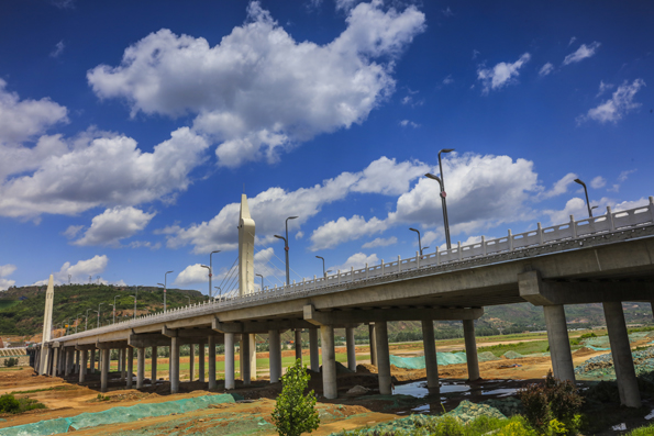 彬縣豳風(fēng)涇河大橋,起于縣城中山街與公劉街十字,沿中山街延伸線向北跨越緯一路、濱河大道、涇河河堤路、涇河、福銀高速,并與G342相交,向西接創(chuàng)業(yè)大道,向東接火車(chē)站大街,終點(diǎn)接湫彬公路。設(shè)計(jì)全長(zhǎng)1.897公里,其中橋梁長(zhǎng)830米,橋南連接線長(zhǎng)427米,橋北連接線長(zhǎng)640米。主線及橋南引線采用一級(jí)公路標(biāo)準(zhǔn),設(shè)計(jì)時(shí)速60公里,雙向六車(chē)道,路基寬度32米,分離式路基,單幅路基寬度13.5米。橋梁設(shè)計(jì)荷載為公路-I級(jí)。