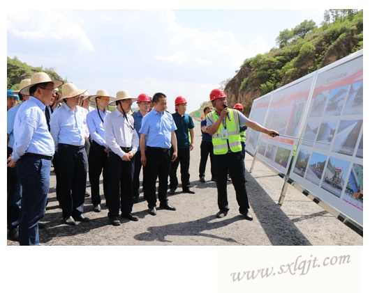 在黃屯互通立交楊育生廳長聽取了延子項(xiàng)目總體建設(shè)情況匯報(bào),隨后深入K44+700處路面中面層施工現(xiàn)場、K12+000棄土造田示范點(diǎn)以及好坪溝立交等施工一線,察看了棄土造田、環(huán)保、綠化等工程進(jìn)展情況,了解當(dāng)前急需解決的問題,并對(duì)延子項(xiàng)目建設(shè)進(jìn)度、工程質(zhì)量等各方面予以充分肯定,提出三點(diǎn)要求:一是項(xiàng)目要持續(xù)加快工程建設(shè),確保提前建成通車,實(shí)現(xiàn)年內(nèi)通車的總體目標(biāo);二是認(rèn)真落實(shí)習(xí)近平總書記來陜考察的重要講話精神、將綠色發(fā)展理念貫徹項(xiàng)目建設(shè)全過程,積極做好棄土造田、改善沿線水土流失、加快植被恢復(fù)、努力將延子項(xiàng)目建設(shè)成綠色環(huán)保路;三是進(jìn)一步提升工程品質(zhì),在現(xiàn)有基礎(chǔ)上做精做細(xì),完善優(yōu)化防護(hù)排水系統(tǒng),提升整體工程形象。