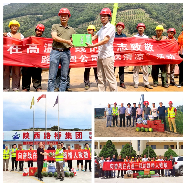 ???? 第二工程有限公司工會(huì)先后來(lái)到太鳳、神木、延黃突擊任務(wù)、旬邑總包一分部、田王立交、蘭池大道以及西咸導(dǎo)改道路工程等項(xiàng)目進(jìn)行走訪慰問(wèn),將飲料、西瓜、茶葉等防暑降溫慰問(wèn)品發(fā)放到職工手中,囑咐一線員工在高溫天氣下要注意休息,防止中暑,并要求項(xiàng)目部積極做好后勤保障工作,將送清涼工作深入到工隊(duì)、班組,讓大家感受到企業(yè)的關(guān)愛(ài),確保項(xiàng)目全體參建人員安全、健康度夏。