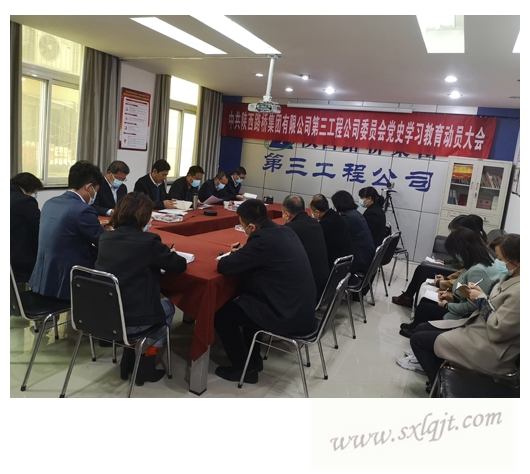 會上,三公司黨委副書記、副總經(jīng)理王策略同志傳達了集團公司黨委黨史學習教育動員大會會議精神;副總經(jīng)理侯曉寧對黨史學習教育實施方案進行說明,黨委書記申良革作黨史學習教育動員講話,對學習教育活動提出三點要求,一是深刻領會精神、提高站位,充分認識開展黨史學習教育的重大意義;二是準確把握關(guān)鍵、明確目標,高質(zhì)量高標準開展黨史學習教育;三是強化組織領導、改革創(chuàng)新,確保黨史學習教育各項任務高質(zhì)量推進。