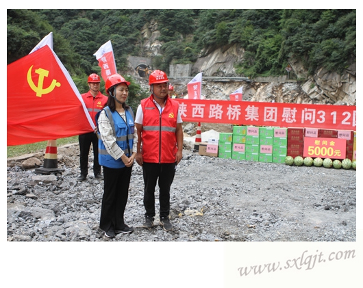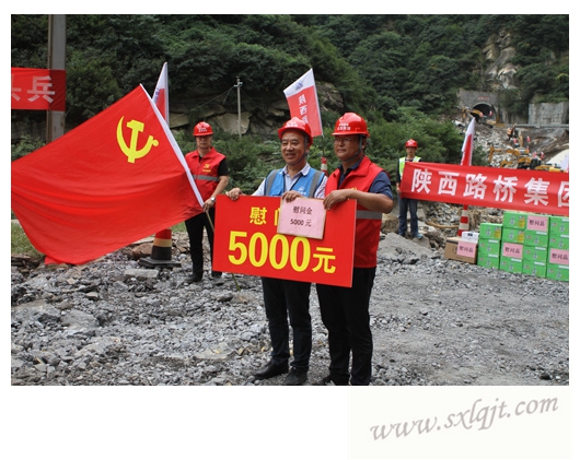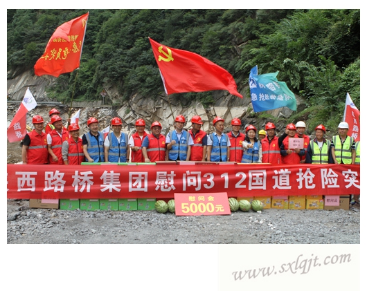 8月26日,陜西路橋集團黨委副書記、總經(jīng)理石強一行前往國道312藍小段搶險施工現(xiàn)場親切慰問搶險突擊隊干部職工,集團公司監(jiān)事會主席唐軍需、董事田權(quán)良、紀委書記李銅川、工會主席孫夏麗一同慰問。