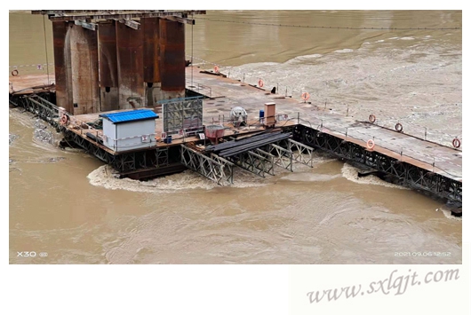 ?自8月19日以來,旬陽縣各鄉(xiāng)鎮(zhèn)受多次強降雨影響,自然災(zāi)害頻發(fā),外加上游安康漢濱、石泉、紫陽、鎮(zhèn)平等地洪災(zāi),漢江水位持續(xù)攀升,嚴(yán)重影響到項目部施工安全。項目部聞汛而動,立即啟動防汛應(yīng)急預(yù)案,安排人員24小時觀測、巡查,并采取多種措施積極應(yīng)對汛情:一是由于暴雨導(dǎo)致上游漂浮物在鋼棧橋上游大量滯留,且洪水將南岸鋼棧橋第一跨輔助樁沖毀,項目部在確保人員和機械安全的情況下,安排挖機及時清理鋼棧橋兩側(cè)滯留樹枝、樹根及生活垃圾;二是新一輪強降雨來襲,為確保鋼棧橋穩(wěn)定性,項目部安排人員配合吊車將第一跨鋼棧橋貝雷梁接長至第二跨工字鋼橫梁。同時按照縣交通局和總監(jiān)辦通知要求,將施工現(xiàn)場所有人員機械全部撤離,確保生命財產(chǎn)安全;三是受持續(xù)強降雨影響,上游7個水電站開始泄洪,漢江水位迅速上漲(漲幅2.7m),9月6日水位距鋼棧橋貝雷梁底不足20公分,嚴(yán)重威脅到鋼棧橋安全,情況萬分危急。項目部立即將現(xiàn)場情況第一時間上報縣交通局、縣政府、市政府,并加強現(xiàn)場監(jiān)測,最大限度確保棧橋安全。