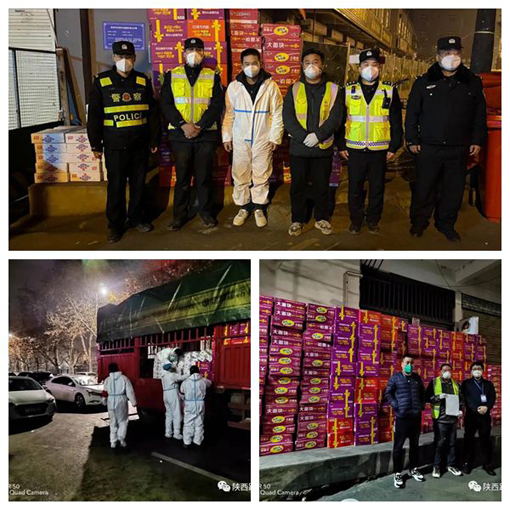 1月9日,按照陜西交控集團統(tǒng)一安排,陜西路橋集團京昆改擴建7標專項任務(wù)工作隊調(diào)配3臺9.6米貨車,迅速在灃京服務(wù)區(qū)集結(jié),嚴格車輛消殺、人員防護等工作,經(jīng)過7小時不間斷作戰(zhàn),將1100箱袋裝方便面,2700箱桶裝方便面、930箱火腿腸、2000提衛(wèi)生紙、40雙膠鞋等生活物資送往雁塔區(qū)、蓮湖區(qū)及長安區(qū)等8個城中村,及時解決了城中村生活物資暫時短缺的問題。